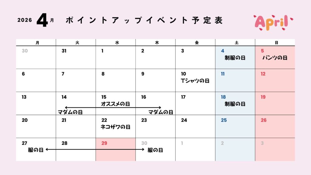 ⇒ 学校制服関連商品をお買い上げでポイント2倍